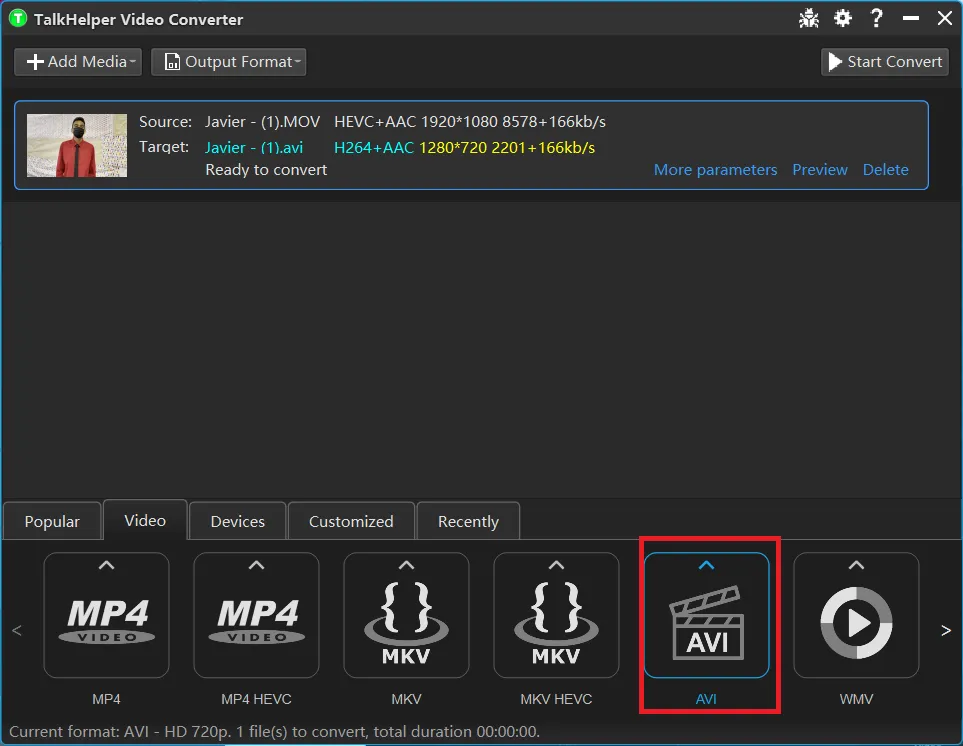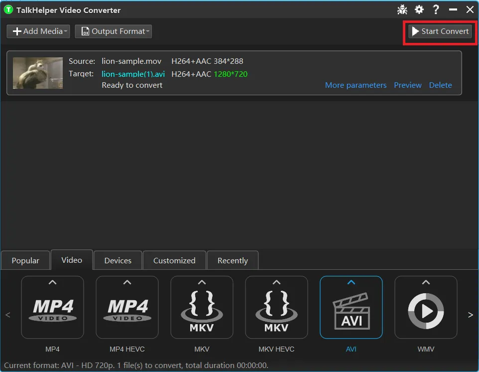 If you are a Windows or Mac user, TalkHelper Video Converter is the best way to convert MOV to AVI without quality loss, it is full-featured stand-alone program that provides 1,000 formats for video and audio conversion, you can easily convert MOV to MP4, AVI, MKV, and WMV using this tool.