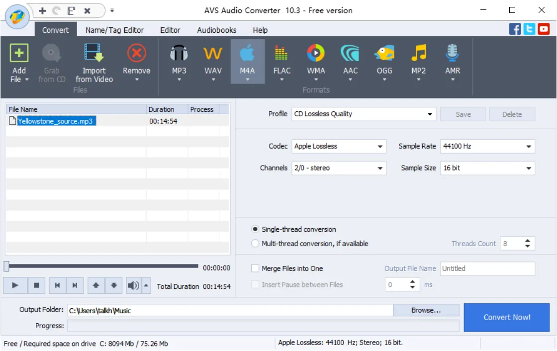 AVS Audio Converter is an all-in-one tool that gives you the necessary features to convert MP3 to M4A without seeking external programs. It simplifies the process using a bunch of conversion presets like CD Lossless Quality, Blu-ray (DVD) Lossless Quality, Good Quality, Standard Quality, Economy Quality, and iPhone Ringtone. Advanced users can go further and tweak these presets to their preferences like choosing between AAC or Apple Lossless codec.