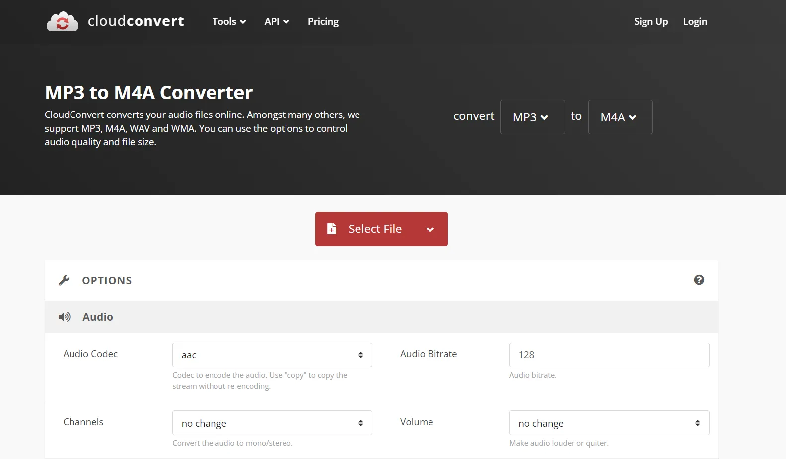 CloudConvert is a suitable online tool to convert MP3 to M4A without the need to install any cumbersome programs. This is a tool you can use on the go as it allows you to convert MP3 files from the local storage, direct URLs, or one of the supported cloud services (Google Drive, Dropbox, and OneDrive).